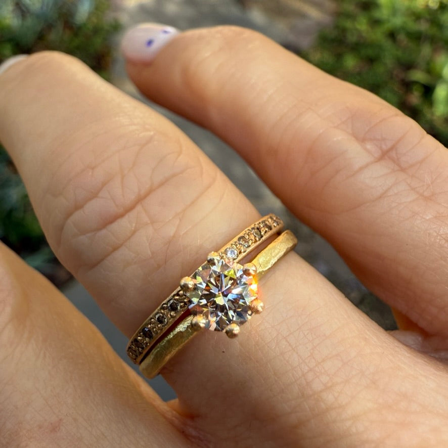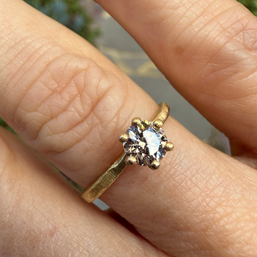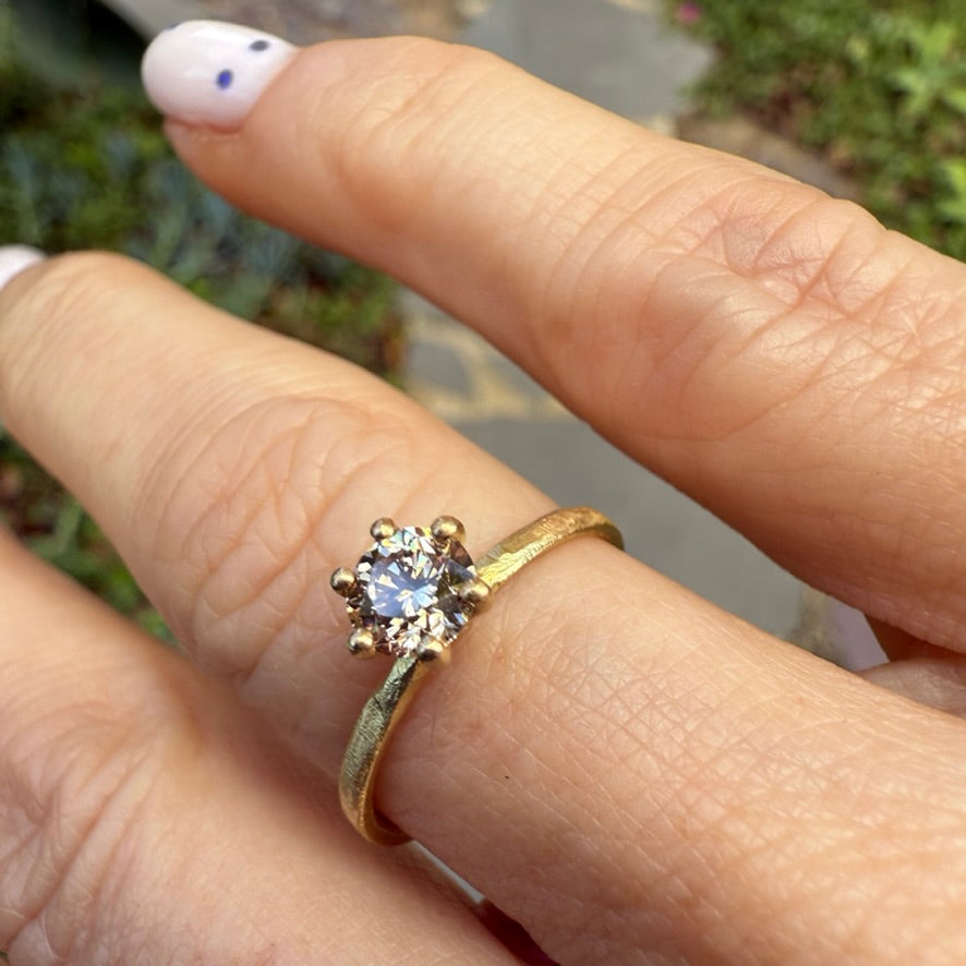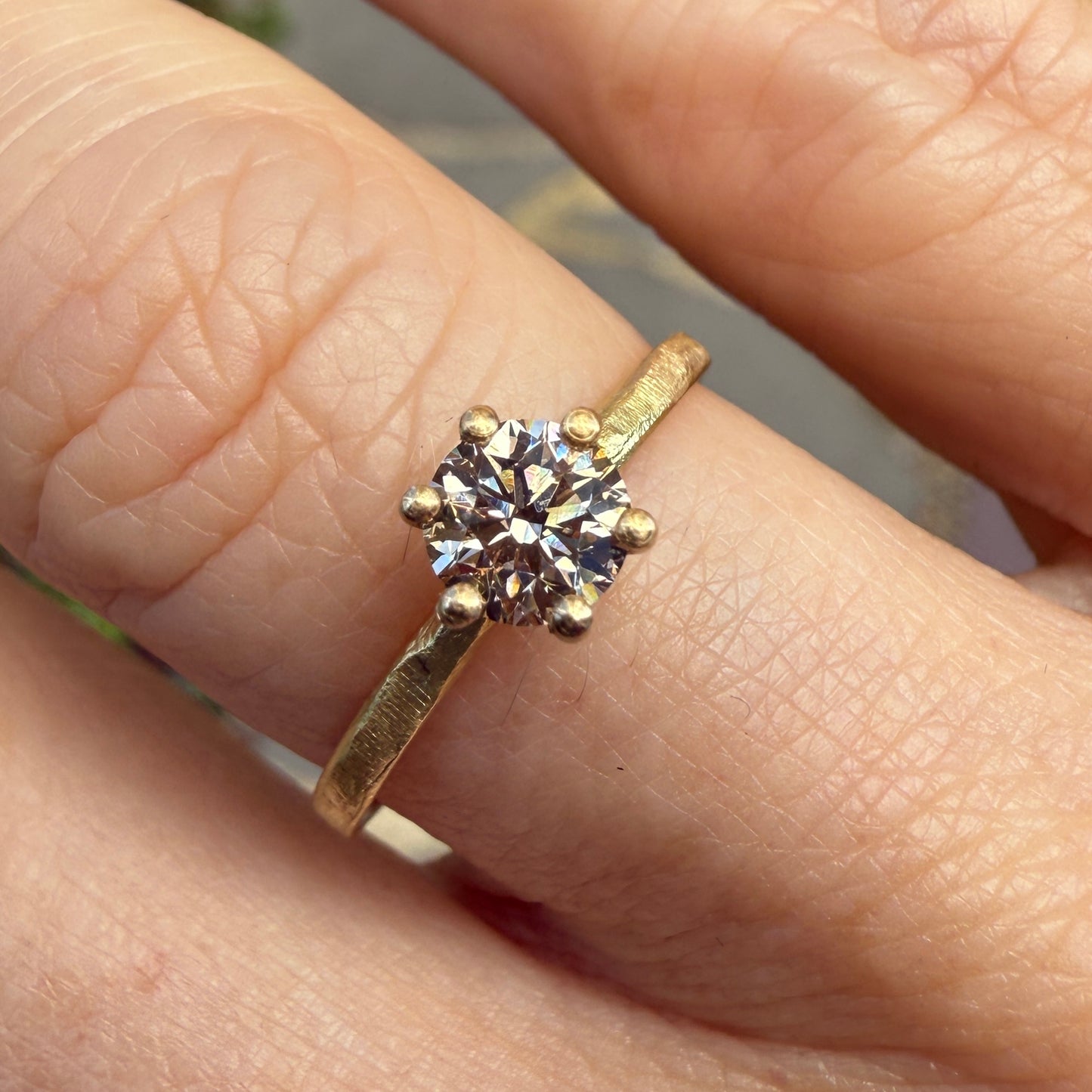 18ct yellow gold engagement ring with round brilliant cut .51ct Australian Argyle diamond with certificate.